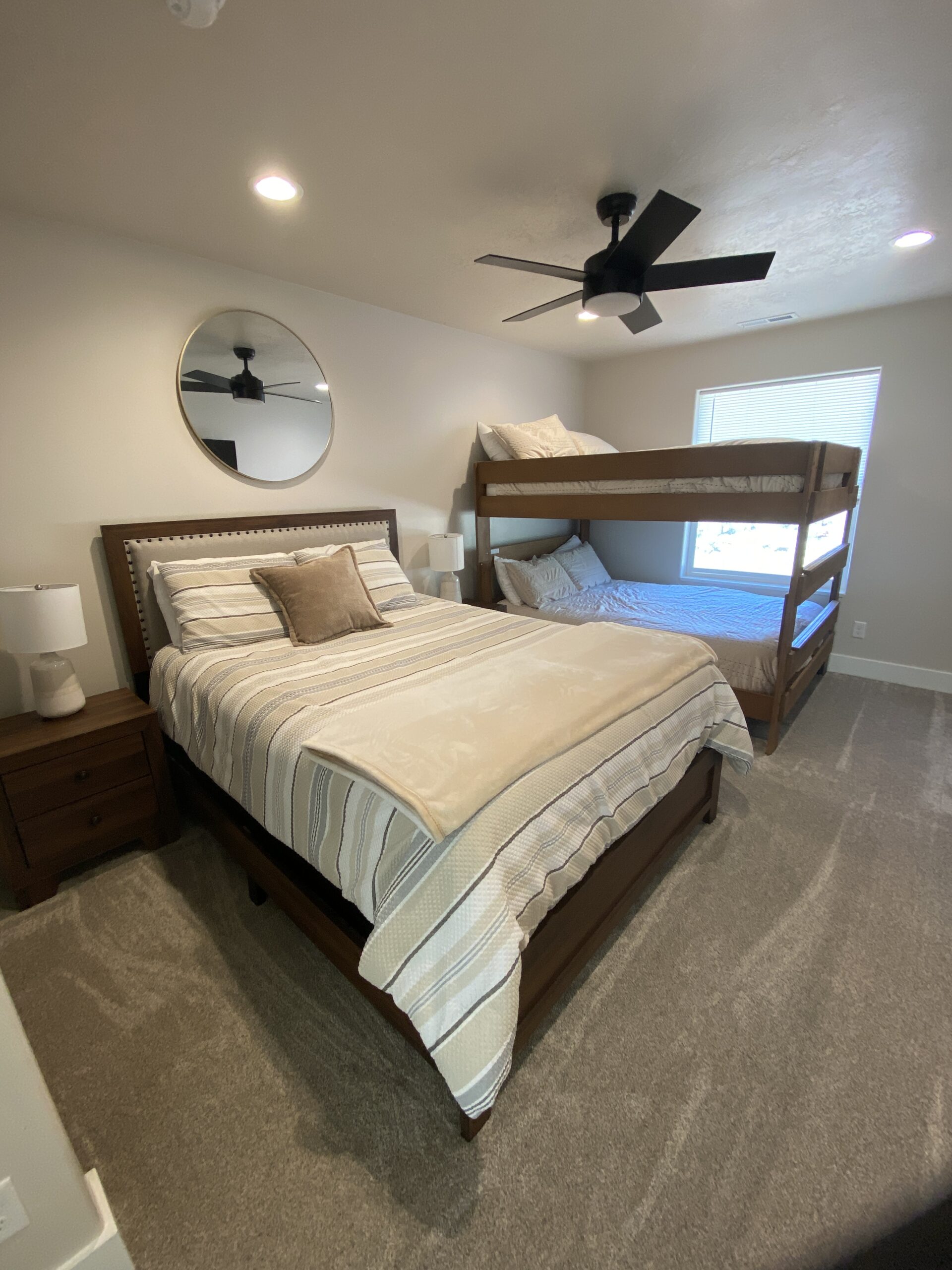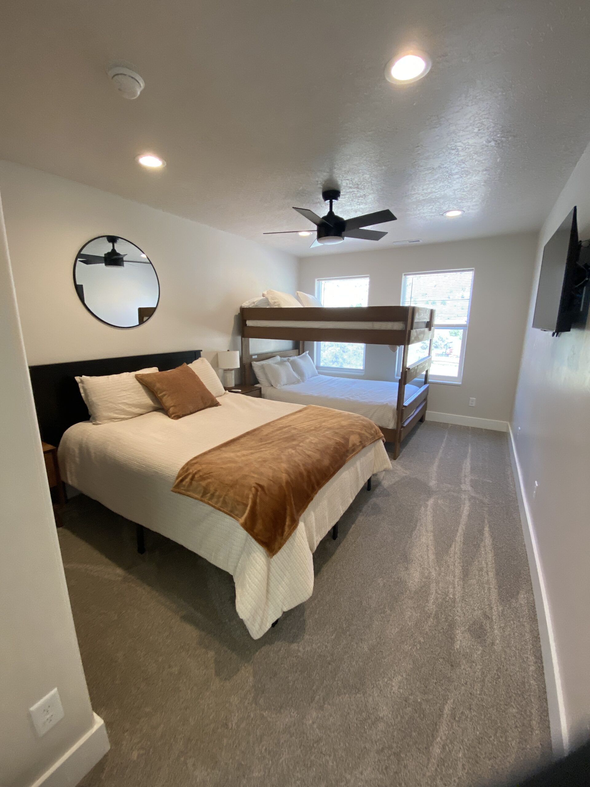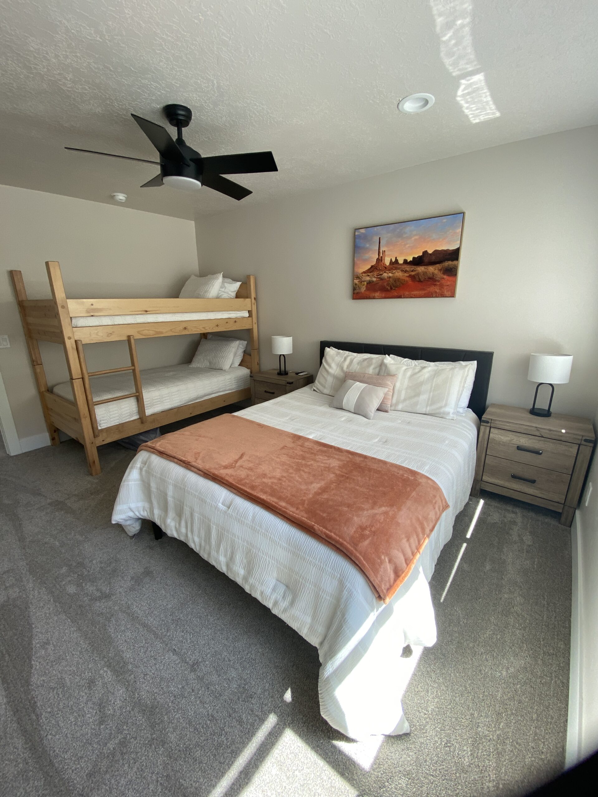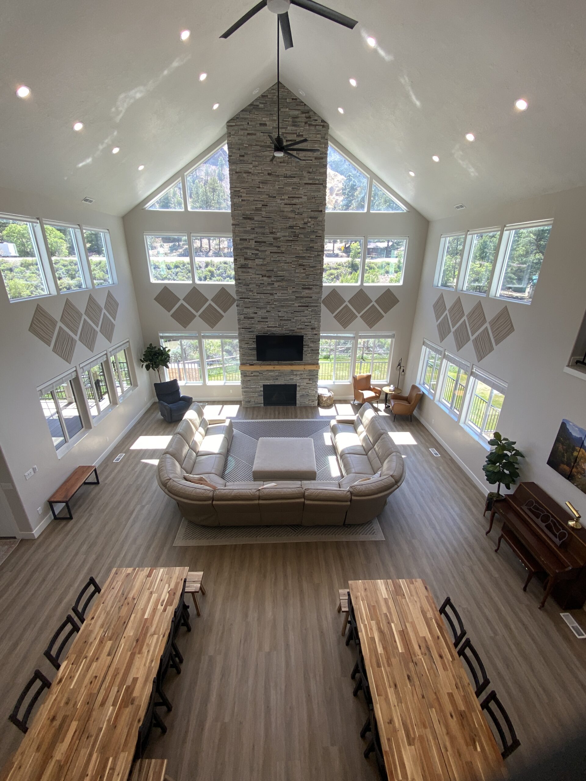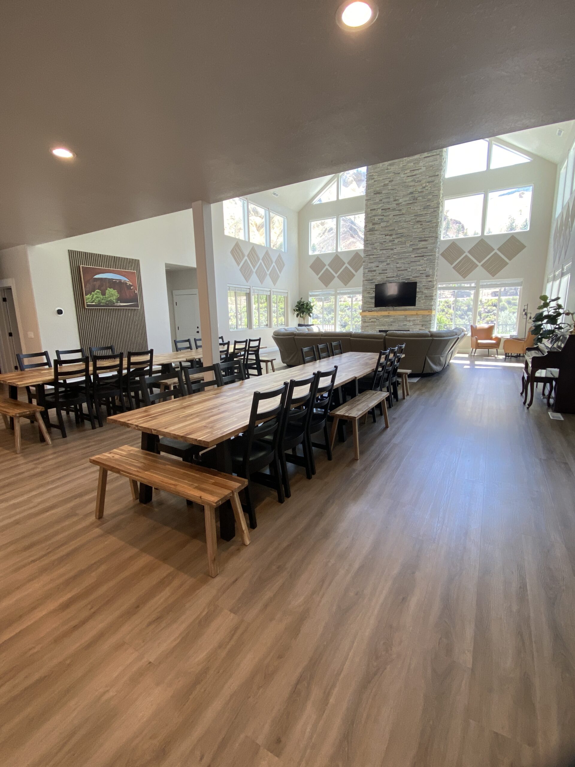 Inside the Marysvale Canyon Lodge, you will find something for everyone to enjoy in the 7,000+ sq-ft. Newly built, this lodge is where comfort meets adventure. From a large dining and living area to a quiet nook, everyone is sure to feel welcome. You and your guests can spread out between 9 rooms (sleeps 45 people on beds) including one large "cousin room" or bunk room, a game room, two living room spaces, a theater room, the nook, or the hot tub. A beautiful FULLY stocked kitchen (you bring the food, we have the rest) and spacious dining room give everyone plenty of space to come together. We offer 8.5 bathrooms and a washer and dryer to help make your stay more comfortable. Whether you want to curl up on the couch to read a book or experience the variety of adventure out the back door, the Marysvale Canyon Lodge is sure to have something for everyone and where memories are made.